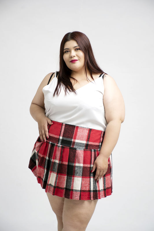 Falda mini tablas cuadrada para Mujer Curvy – Estilo Tallas Extra
