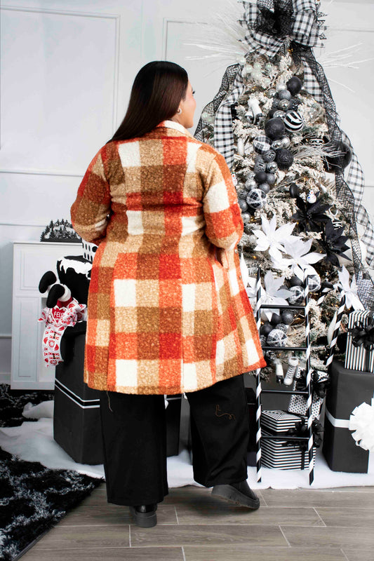 Abrigo Largo de Tela a Cuadros Oversize | Estilo para Mujeres con Curvas