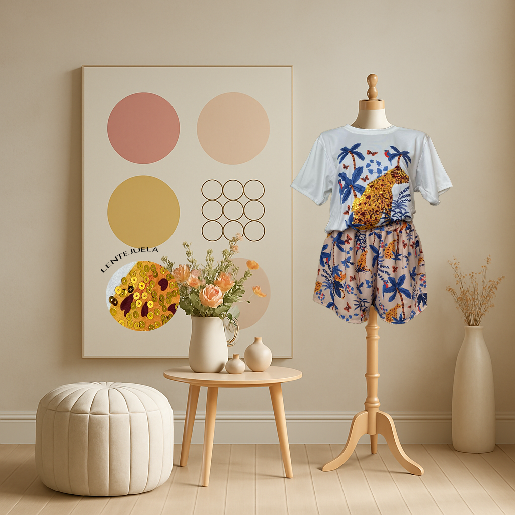 Conjunto Blusa de Lentejuelas y Short Sublimado | Glamour y Comodidad