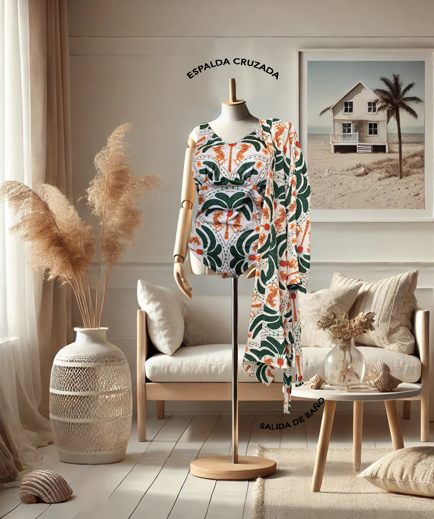 Luce espectacular con nuestro traje de baño completo sublimado, diseñado para resaltar tu figura con un toque único. Su espalda cruzada te da el soporte y estilo que necesitas, mientras que la salida de baño a juego le da ese extra que hace la diferencia. Ideal para vacaciones, escapadas de fin de semana o días de sol. Cómodo, favorecedor y lleno de color.