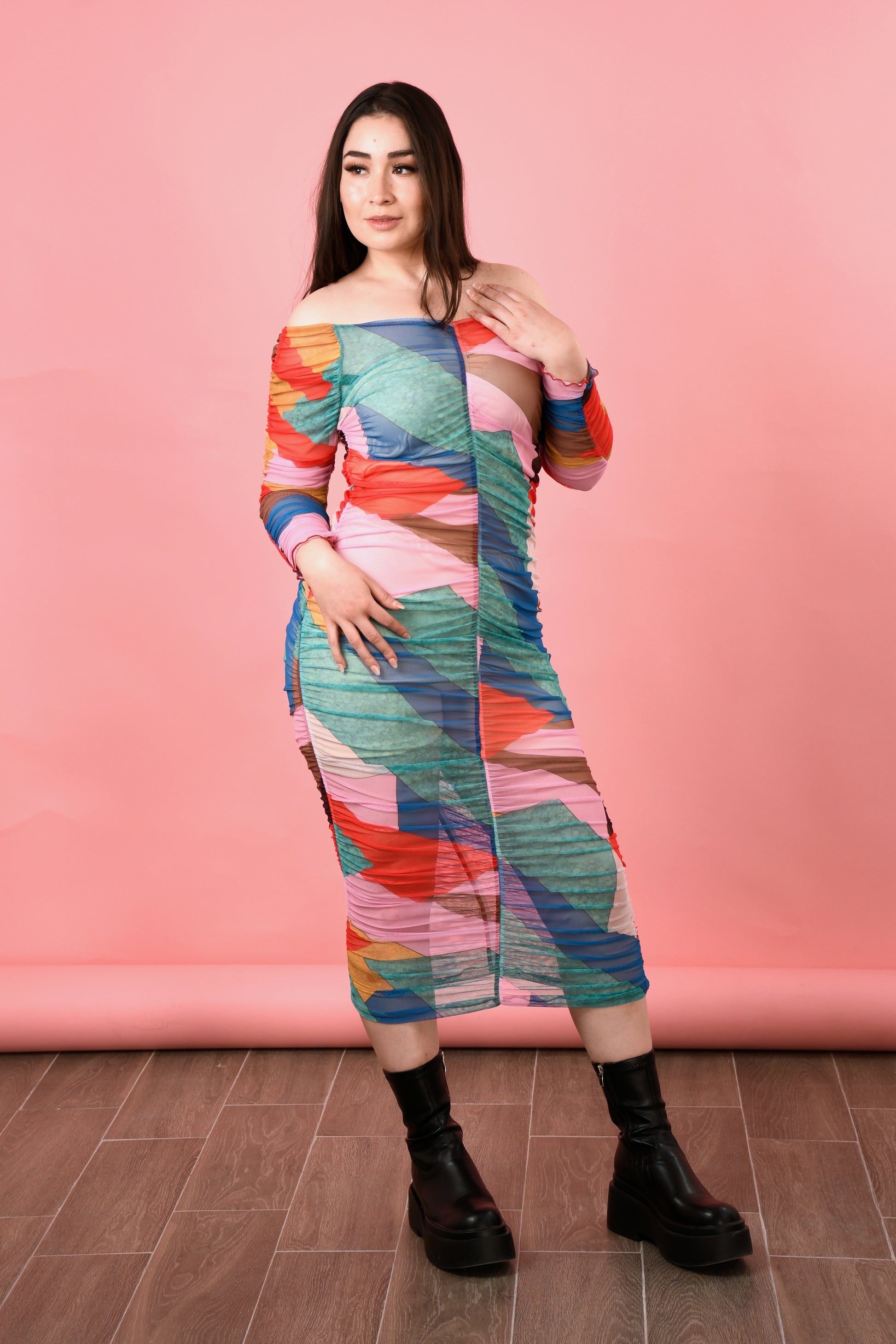 Descubre la elegancia moderna en cada detalle con nuestro vestido midi ajustado de mesh fruncido de manga larga en unitalla. Esta prenda única fusiona un tejido ligero y sofisticado con un corte entallado que realza tu figura, adaptándose a todas las siluetas. Los detalles fruncidos aportan un toque dinámico y vanguardista, haciendo de este vestido la elección perfecta para destacar en eventos especiales o para lucir un look chic en tu día a día. ¡Atrévete a renovar tu estilo y a brillar con confianza en cada ocasión!